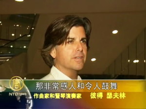 彼得.瑟夫林(Peter Sterling, composer & Harp musician)是豎琴演奏家和作曲家,也彈奏中國古箏,獲得最佳古典唱片大獎,04年以“豎琴夢”CD在100名音樂家中拔得頭籌,被視為“純音樂”(Real Music)的代表人物。5月13日,他觀看了神韻在大洛杉磯地區的最後一場演出。