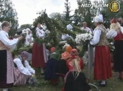 【新唐人】【歐洲縱橫】(86)瑞典仲夏節:大人孩子一起裝點花樹,唱起童謠。