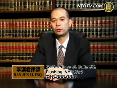 【新唐人2009年10月28日訊】專業辦理遺囑遺產規劃 為您減少遺產稅 為遺囑遺漏的配偶和子女辦理遺產訴訟地址:39-07 prince St.Suite 3K,Flunshing,NY 11354電話:718-888-0882