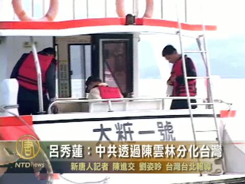 【新唐人2009年12月26日訊】中華民國前副總統呂秀蓮,星期五接受媒體採訪時說,陳雲林來臺讓國民黨高層與馬總統之間的關係,起了非常嚴重的政治變化。而民進黨和本土派也需要修補,呂秀蓮認為中共不只滲透台灣社會,也透過陳雲林來臺分化台灣政黨。