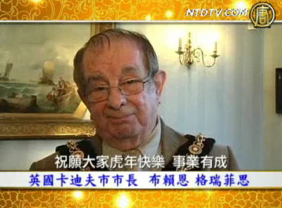 【新唐人2010年2月20日訊】英國卡迪夫市長Brian Griffiths賀年向新唐人電視台全球觀眾說新年好,非常感謝能有此機會代表卡迪夫市表達新年祝福。祝願大家虎年快樂,事業有成。