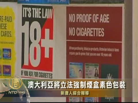 【新唐人2010年4月29日訊】澳大利亞將強制煙草公司採用素色包裝,在兩年內將煙盒上所有的顏色和品牌移除。根據政府的說法,他們為了減少吸菸死亡率,在全世界首開先例。星期四,澳大利亞總理陸克文展示了這種最新素色煙盒設計,並強制要求煙商配合。