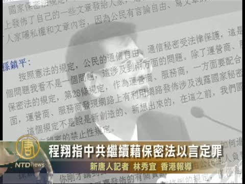 【新唐人2010年5月8日訊】中共人大常委日前通過修訂國家秘密法,首次明確要求網絡商配合當局的調查。香港資深傳媒人程翔認為此舉是嚴重的倒退。他並指出新舊保密法都沒有明確說明何謂洩密,是中共刻意保留的漏洞,方便以言定罪。
