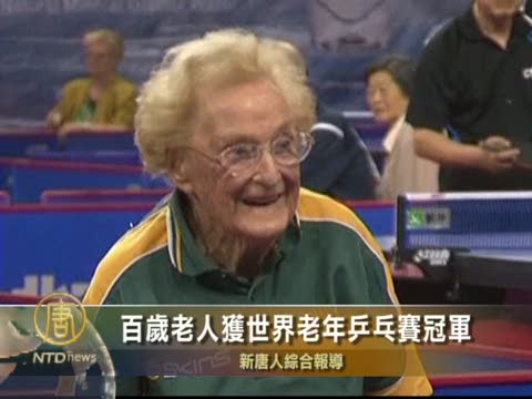 【新唐人2010年6月9日訊】人們常說,老當益壯,可是100歲的老太太,贏得世界老年乒乓球比賽冠軍,恐怕還沒聽說過。