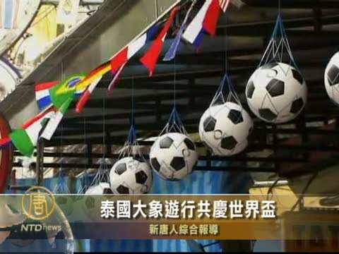 【新唐人2010年6月11日訊】世界級的足球盛宴--世界盃即將拉開帷幕,球迷們熱情已經開始沸騰了,甚至不參加比賽的泰國都已經感到了這股熱潮,泰國的大象和幾百名學生們6月10日(星期四)舉行遊行共同慶祝世界盃,同時希望有更多的遊客來到泰國。
