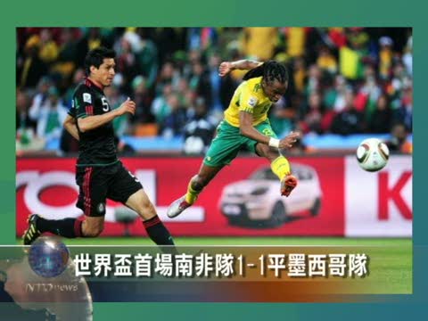 【新唐人2010年6月12日訊】2010年南非世界盃揭幕戰中,東道主南非隊1-1戰平墨西哥隊。第54分鐘南非隊查巴拉拉禁區外抽射得分,第79分鐘,墨西哥隊馬奎斯在球門右側無人防守射門得分。首場比賽總共有84490名球迷到現場觀戰。