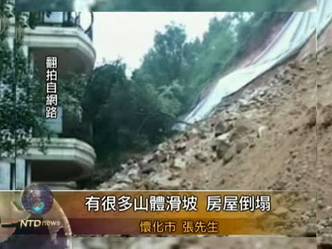 【新唐人2010年6月12日訊】中國湖南湘西的連日暴雨,造成鳳凰、麻陽、漵浦等三個縣城被淹,山體滑坡引發的泥石流,衝垮了很多房子,造成至少6人死亡。當地民眾表示,災區消息被封鎖,政府不准媒體如實報導。