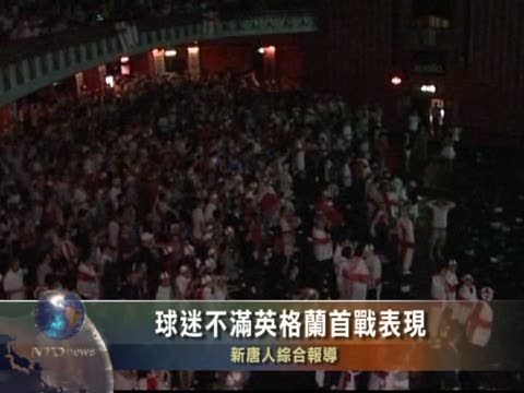 【新唐人2010年6月13日訊】星期六,美國隊和英格蘭隊的世界盃比賽,雖然言和,但英格蘭球迷對英格蘭隊員的失誤和教練的安排表示失望,而美國球迷則興高采烈,歡呼美國隊出色的表現。