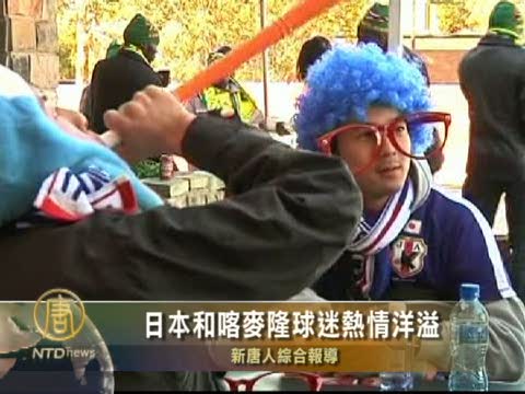 【新唐人2010年6月15日訊】世界盃是球迷們的節日,現在南非的世界盃已經讓球迷們熱情洋溢了,日本和喀麥隆的球迷們到場為他們的球隊喝采,一起分享他們的激動,表達他們的熱情。