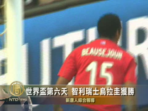 【新唐人2010年6月17日訊】6月16日,南非世界盃小組賽進入第6天。H組第一場比賽智利1比0小勝宏都拉斯,H組第二場瑞士1比0小勝西班牙,A組第三場比賽烏拉圭3比0大勝南非。