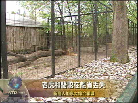 【新唐人2010年6月19日訊】裝有兩只駱駝和一只老虎的皮卡貨車現在在魁省東部丟失了,警方正在四處找尋這些動物。