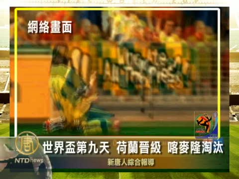 【新唐人2010年6月20日訊】6月19日,南非世界盃小組賽進入第9天。D組第四場比賽加納1比1戰平澳大利亞﹔E組第三場比賽荷蘭1比0小勝日本﹔E組第四場丹麥2比1小勝喀麥隆。荷蘭隊成為本屆世界盃第一個進入十六強的球隊,非洲雄獅喀麥隆則不幸成為32支球隊中第一個被淘汰出局、打道回府的球隊。