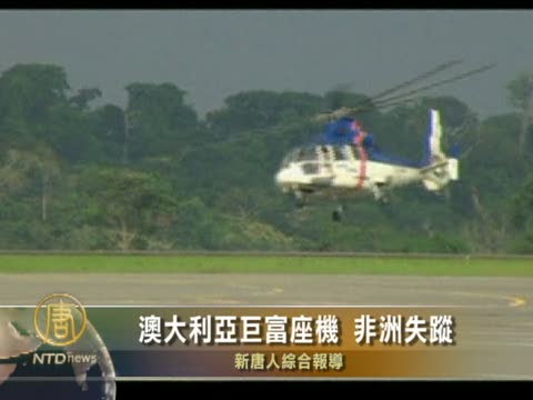 【新唐人2010年6月21日訊】6月20日星期天,救援飛機在喀麥隆和剛果共和國的邊境叢林裡搜尋一架失蹤飛機。週六,這架載有澳大利亞富翁的飛機,在從喀麥隆首都雅溫(Yaounde),飛往剛果首都揚加都(Yangadou)的途中失蹤。