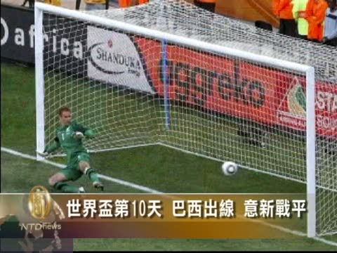 【新唐人2010年6月21日訊】6月20日,南非世界盃小組賽進入第10天,F組第三場比賽巴拉圭2比0勝斯洛伐克﹔F組第四場比賽又爆出冷門,上屆冠軍意大利隊被實力較弱的新西蘭1比1逼平﹔G組的第三場比賽,巴西隊3比1擊敗科特迪瓦,提前小組出線。