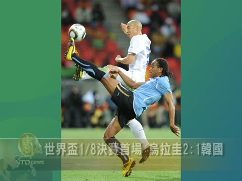 【新唐人2010年6月27日訊】6月26日,南非世界盃八分之一決賽首場比賽,韓國對陣烏拉圭,於當地時間下午4點在伊麗莎白港的曼德拉灣球場開賽。