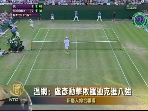 【新唐人2010年6月29日訊】在星期一的溫布爾登網球賽男單比賽中,台灣選手盧彥勳擊敗了美國名將、世界排名第7的羅迪克,晉級八強,成為1995年以來,首位闖進大滿貫八強的亞洲選手。