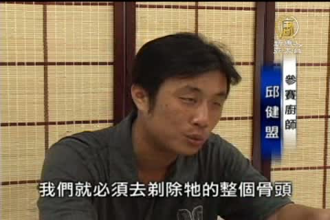 參賽廚師 邱健盟:「新唐人這一次他所謂的廚技比賽,正巧是考驗我們業界所有廚師的一種廚德、道德觀,不再是一種追求表面,而是追求我們每個人的內涵,內心的東西。所以在這邊呼籲我們業界所有各位朋友各位廚師各位大師我們一起踴躍參加共襄盛舉。」