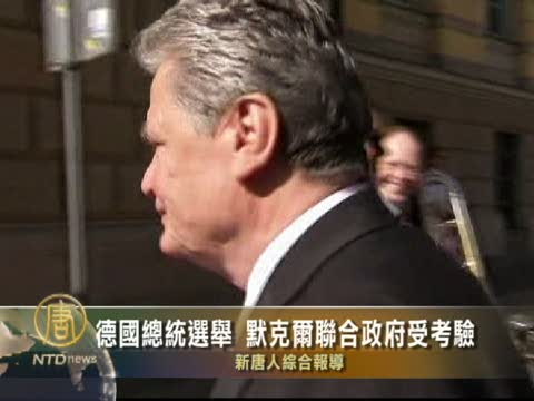 【新唐人2010年6月30日訊】科勒的突然離開所留下的政壇混亂遠遠沒有結束,即將在6月30日舉行的德國總統選舉為現任政府出了道難題。究竟是執政黨推舉的候選人當選,還是反對黨推舉的候選人當選,成為了對默克爾聯合政府的一次考驗。