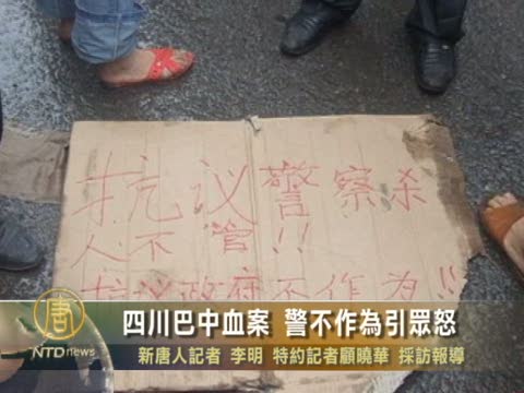 【新唐人2010年7月1日訊】四川巴中市近日發生上千民眾,街頭聚集抗議事件,由於警察對於當地一樁殺人案件不作為,讓民眾相當氣憤,因而群聚抗議,地方政府緊急出動公安與特警到場威嚇,群眾才在當天下午2點逐漸散去。