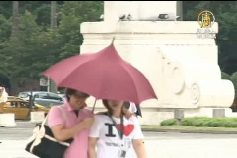 天氣真的好熱,觀眾朋友走在路上是不是覺得快要被融化了?受到太平洋高壓和都市熱島效應的影響,台北市下午一點的溫度達到37.7度;不過,卻還不是最高溫的地區,今天最熱地方出現在基隆,氣溫一度上升到37.9度,直逼38度大關。紫外線指數從早上10點開始就一路飆升,到中午12點,指數從7狂升到10,屬於「極強」的等級,由於在太陽底下曝曬十五分鐘就可能曬傷,街上的民眾是特別小心防曬。而高溫炎熱,也讓全國用電量再度創下歷史新高。台電表示,今天下午兩點到三點這一個小時的平均尖峰用電量為三千兩百八十二萬千瓦,已經打破民國九十六年七月二十三號所保持的歷史紀錄。酷暑要到明天才會稍微緩和,後天就會開始出現午後雷陣雨。
