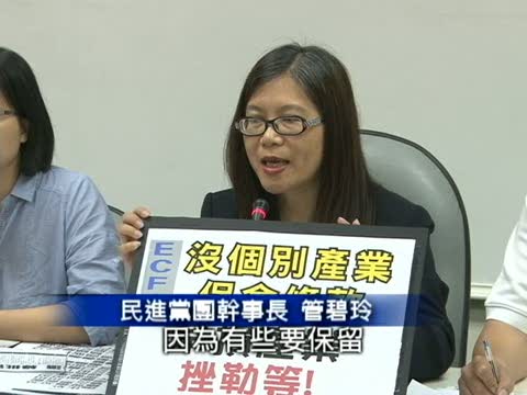 民進黨立委指出,ECFA的傷害會在個別產業逐步發生,但目前沒有設置個別產業的保命條款,將來也不可能為了個別產業全盤終止ECFA,就算要全面終止,至少要等半年。