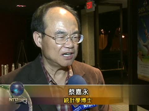 【新唐人2010年7月17日訊】神韻紐約藝術團於7月13日至15日在美國加州聖地亞哥舉行三場演出,數千觀眾前往觀賞,來自台灣的統計學教授蔡嘉永讚嘆神韻舞蹈演員的美與傳神及其所表現的中國傳統精神內涵為人生帶來啟示。