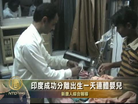 【新唐人2010年8月2日訊】印度北方邦的醫生通過手術,成功地分離了一對兒出生僅一天的連體雙胞胎嬰兒。請看報導。