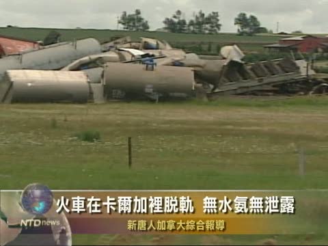 【新唐人2010年8月4日訊】今天,一輛裝著無水氨的火車在卡爾加里的北部脫軌,不過幸運的是氨水沒有泄露的跡象。