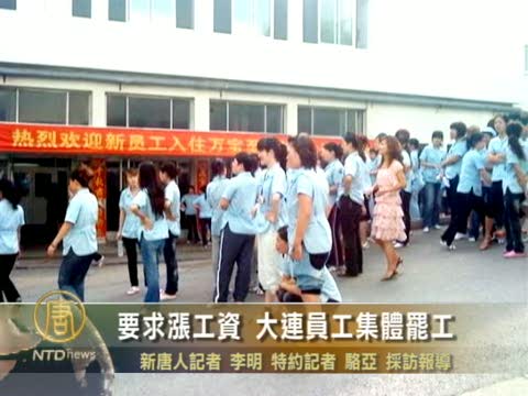 【新唐人2010年8月4日訊】大連開發區不少企業的員工爲應付物價、生活費用的上漲,7月中下旬開始相繼罷工要求增加工資。目前一些企業經過勞資雙方的談判後,工資漲幅從200元到500元不等。然而一些工資沒有談妥的小企業,員工仍在堅持罷工。