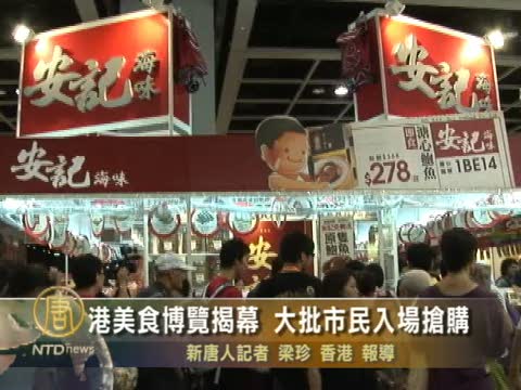 【新唐人2010年8月13日訊】亞洲區最大的飲食展覽之一的香港美食博覽,星期四在香港揭幕,預計吸引超過30萬人次入場,比去年更為熱鬧。首日有大批市民入場搶購特價貨,包括免費鮑魚等都大受歡迎,一起去看看。