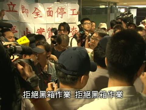 「拒絕黑箱作業,拒絕黑箱作業!」「我們要進去,讓我們進去會場。」