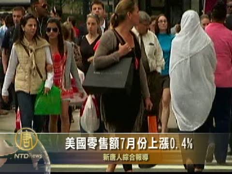 【新唐人2010年8月14日訊】據美國貿易部星期五公布的消費報告顯示,美國零售業銷售額在今天七月增長達0.4%,創下自4月以來的首次上漲,但漲幅比預期的要小。