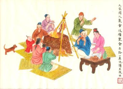 老夫妻當天晚上按著天神所示就睡在院中的木船之上,第二天醒來的時候,他們發現整個村莊都淹沒了。等到大水退去之後,剩餘的人們找不到食物,後來發現淺坑裡,有一些剛剛死去的魚,於是人們就把這些魚撿來,然後片成魚片,用水滑熟了之後,「滑炒魚片」就這樣誕生了。