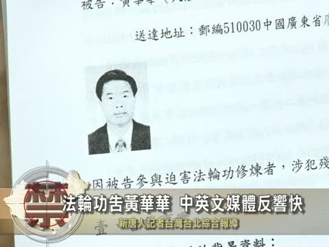 【新唐人2010年8月18日訊】廣東省長黃華華因為嚴重參與迫害法輪功,在海外遭控訴,使得他這趟台灣行也格外受到爭議。禮拜一,台灣法輪功團體當面要求高檢署,緊急拘提黃華華。不只為人權界投下震撼彈,許多媒體也即時報導消息。帶您綜覽截至目前為止的媒體效應。