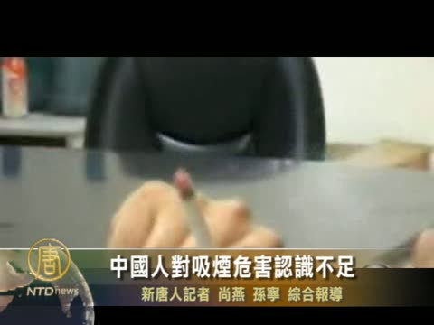 【新唐人2010年8月19日訊】17號,世界衛生組織、中國以及美國的疾病預防控制中心在深圳聯合發佈了首次“全球成人煙草調查•中國部分”的調查結果。結果表明:中國吸煙者總數多達3億1百萬。反吸煙宣傳活動並沒有對公眾產生影響,近八成中國人對吸煙危害認識不足。