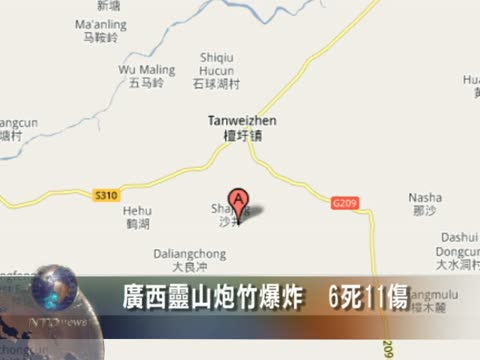 【新唐人2010年8月23日訊】中國大陸官方媒體報導,週日上午8時37分,廣西欽州市靈山縣檀圩鎮沙井村, 一處炮竹加工點發生爆炸事故,造成6人死亡,3人重傷,8人輕傷。