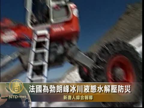 【新唐人2010年8月28日訊】法國工程人員從25日開始打孔抽取勃朗峰冰川下大量的液態水,以防止這些被封在冰川下的液態水一旦受到壓力增加而噴發出來,造成災害,危及附近阿爾卑斯山谷裡3千多名居民的生命和財產安全。