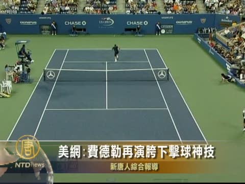 【新唐人2010年8月31日訊】在星期一美國網球公開賽第一天的比賽中,瑞士球王費德勒輕鬆過關,並再次表演了胯下擊球的神奇一擊。