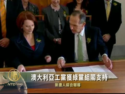 【新唐人2010年9月2日訊】澳大利亞工黨領袖吉拉德(Julia Gillard)週三同贏得一個眾議院席位的綠黨簽署了穩定協議,向贏得組閣權更進了一步。但吉拉德誓言不允許這份協議改變她征收礦業利潤稅的計劃。不過,綠黨領袖鮑勃‧布朗說,綠黨將利用它的制衡力量爭取讓更多人參與決策。