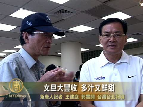 【新唐人2010年9月10日訊】台灣中秋節少不了的文旦,今年大豐收。因為溫度高、雨量少,文旦的糖度都高達11度。在農委會輔導下,外銷數量也逐年拉高,今年預估,會達到500公噸。