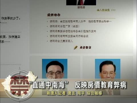 【新唐人2010年9月15日訊】8號。中共官方新聞網推出“直通中南海”留言板,從大陸部分網友上網留言發現,其中向胡錦濤反映最多的是高房價問題,向溫家寶反映最多的則是教育問題。不過,“直通車”工作人員對民意的寬容度有限,在“直通中南海說明書“中,禁令多達26條。