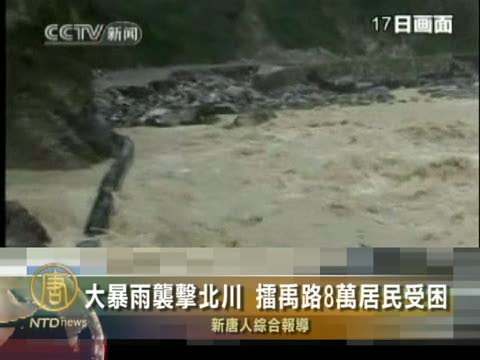 【新唐人2010年9月18日訊】星期四(9月16日)晚到星期五四川省北川縣降下大暴雨,部分地區雨量達到了150多毫米,造成8月24日才通車的生命線擂禹路再度中斷,沿線的12個村鎮成了孤島,8萬民眾受困。