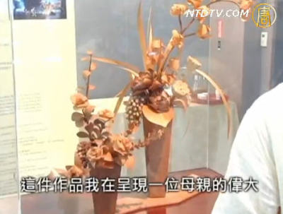 這次展覽邀請大溪木雕老中青三代的工藝家,現場展示各種不同風格的作品﹔包括游禮海老師創作的書卷臺、還有劉清剋老師創作的木風車。其中,利用木屑製成的美麗插花藝術作品,吸引許多觀眾的目光。