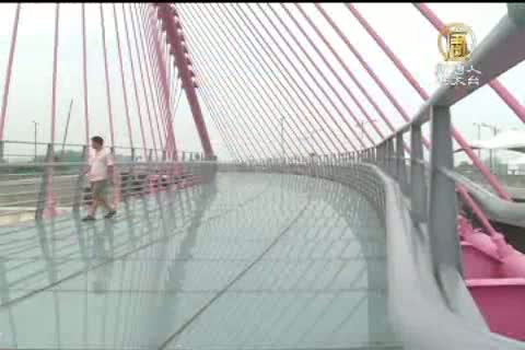 這座情人橋,有不對稱的弓弦造型,粉紅色的橋梁,就坐落在台中大坑的廍子區。除了串聯南來北往的交通網絡,也是新人拍婚紗必到之處。