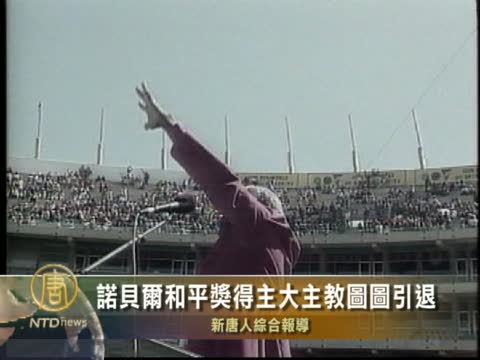 【新唐人2010年10月8日訊】一九八四年諾貝爾和平獎得主、南非開普敦聖公會前任大主教德斯蒙德•圖圖(Desmond Tutu)星期四在他79歲生日時宣佈退休。圖圖一生為廢除南非種族隔離政策奔走,曼德拉總統上任之後,更致力於調解在種族隔離期間所發生的人權迫害事件。