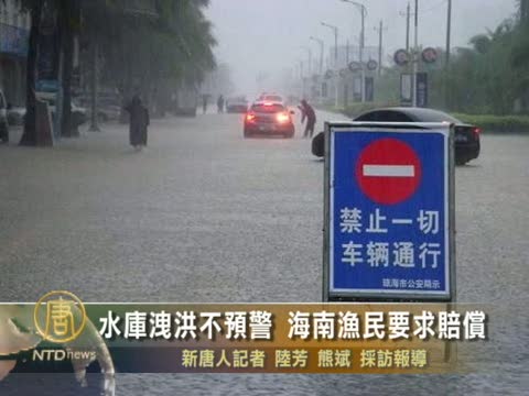 【新唐人2010年10月13日訊】海南潭門鎮,5號合水水庫洩洪沒有事先預警,導致港內很多漁船被沖毀,人員傷亡慘重,當地漁民透露,政府隱瞞災情,不願負責任,漁民們正準備聯名控告政府失職並要求賠償。