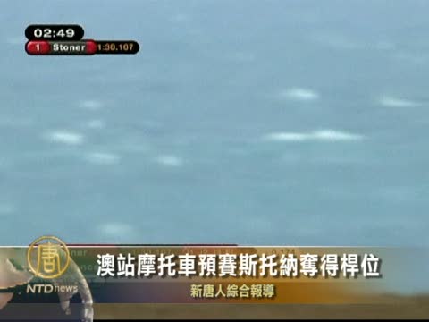【新唐人2010年10月16日訊】10月16號(星期六),澳大利亞選手斯託納(Casey Stoner)以1分30.107秒的成績,奪得2010年世界摩託車大獎賽澳大利亞站預選賽桿位,作為送給自己的25歲生日禮物。今年的世界摩託車大獎賽在經過了塔卡爾、意大利、德國、美國,馬來西亞等賽站的激烈比拚後,澳洲站的比賽格外引人矚目。
