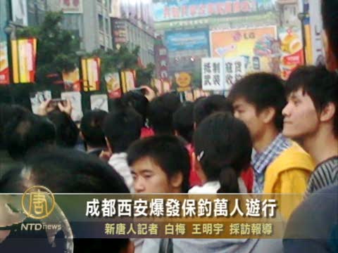 【新唐人2010年10月17日訊】中國四川成都、陜西西安,星期六下午均爆發保釣反日示威,都有上萬人聚集,年輕人居多,現場還一度發生群眾騷亂事件。