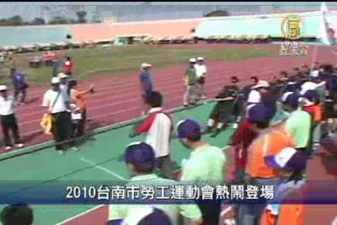 【新唐人亞太台2010年10月17日訊】2010台南市年勞工運動會,17日在台南市立體育場熱鬧登場,今年有78隊勞工團體,1600名勞工朋友參加,年底台南縣市就要合併升格。