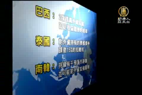 在全球匯率戰爭疑雲揮之不去,新興國家紛紛出招抵擋本國貨幣升值,像是巴西,2度提高外資投資固定收益證券的稅率;泰國政府對外資持有的泰國債券課徵15%的扣繳稅;此外,南韓持續有干預匯市跡象,並可能對外資加強管制;印度央行在上周買入約4億美元,是今年首度對外匯市場進行直接干預;而在南美的智利,央行總裁表示考慮干預匯市;日本政府出手干預匯市。